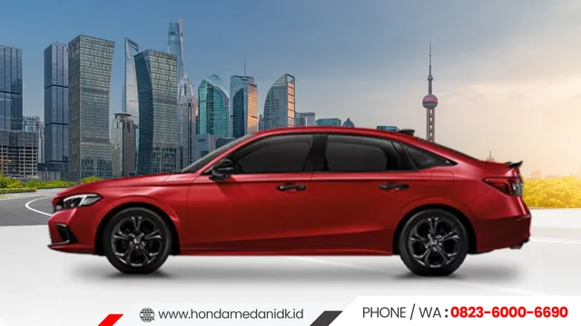 All New Honda Civic RS menampilkan desain yang menggoda dengan kesan yang sporty dan elegan. Dengan garis-garis tegas dan bentuk yang aerodinamis, Civic RS terlihat tangguh dan siap untuk beraksi. Grille depan yang besar dan lampu depan LED yang tajam memberikan kesan wajah yang berani dan modern. Pembaruan pada bagian belakang memberikan sentuhan yang segar dengan lampu belakang LED yang stylish. Desain keseluruhan mencerminkan gaya yang trendi dan dinamis.
